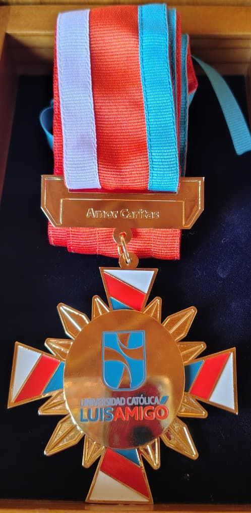 Se otorga en la universidad CATÓLICA LUIS AMIGÓ la Medalla AMOR CARITAS al mérito social VICENTE SERER VICENS A LA FUNDACIÓN FUNCANCER